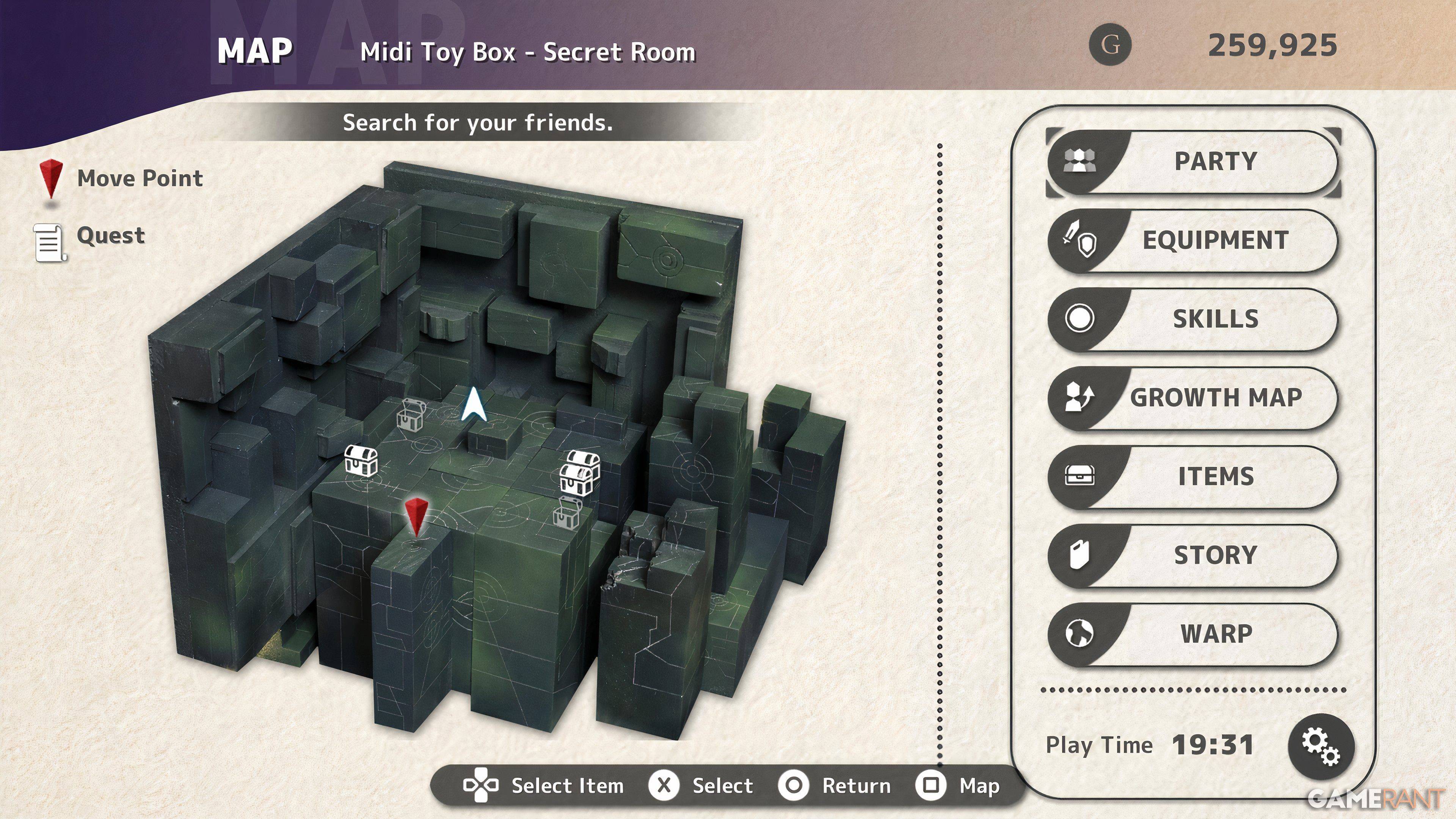 From the Save Point, follow the left path to find the symbol on a wall. |