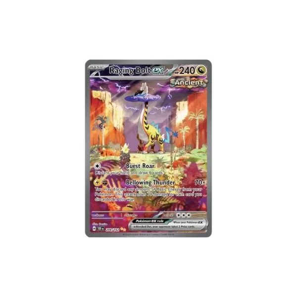 Les forces temporelles mélangent les batailles préhistoriques avec des vibrations de science-fiction rétro. Raging Bolt Ex mène avec l'une des attaques les plus fortes du format standard, suivie de près par Iron Crown Ex , un incontournable des futurs decks.