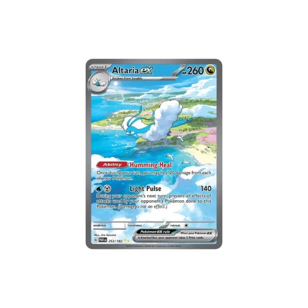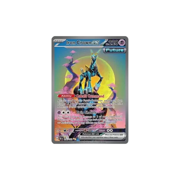 Iron Valiant et Altaria offrent des styles futuristes contrastés, tous deux exécutés avec succès. Iron Hands Ex pourrait ne pas gagner des concours de beauté, mais c'est une puissance dans les decks compétitifs. Cet ensemble offre des visuels époustouflants aux côtés de la pression de jeu intense.
