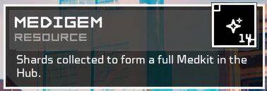 - 사용 : 허브 텔레 패드 및 신사에서 Medkits를 교환합니다 (페루 비트에서 금 배급량을 사용하여 Medkit 용량을 하나로 확장해야 함).