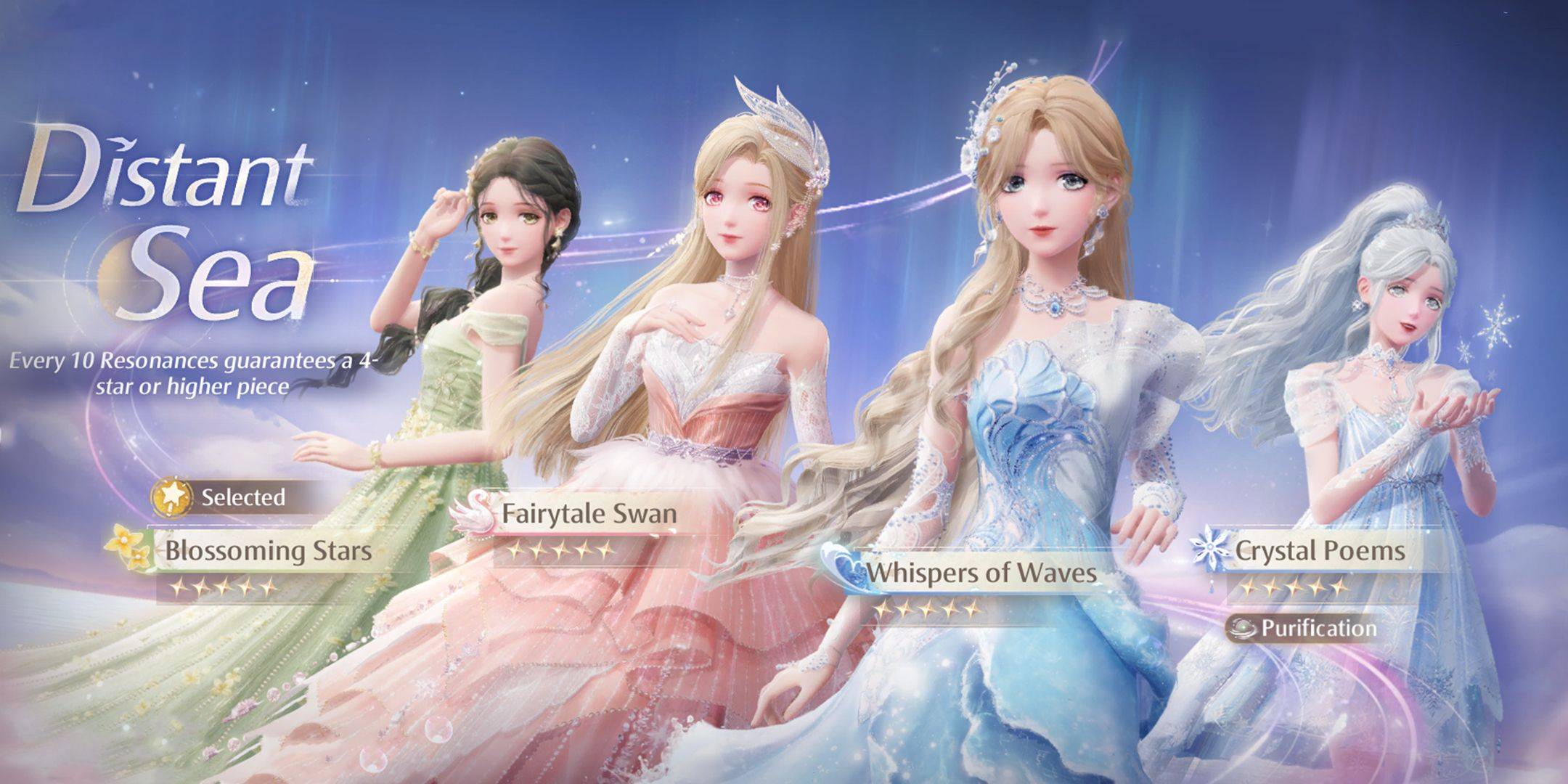 The Standard Banner permanently offers four 5-star outfits: Blossoming Stars, Fairytale Swan, Whispers of Waves, and Crystal Poems. This banner is always accessible.