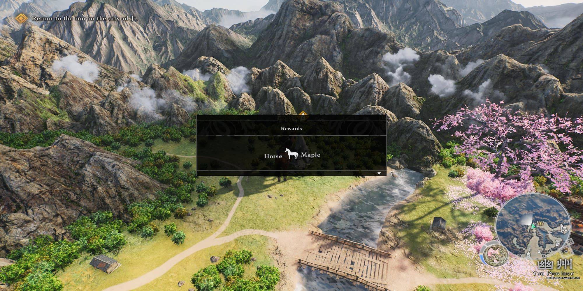 A free mount awaits in Chapter 1! Speak to a merchant encountered in the overworld after completing the "Test Of Zheng Fei" battle. He'll be located northeast of Wan Castle, before reaching the camp, near his horse. He'll gift you the steed upon conversation, automatically equipping it.