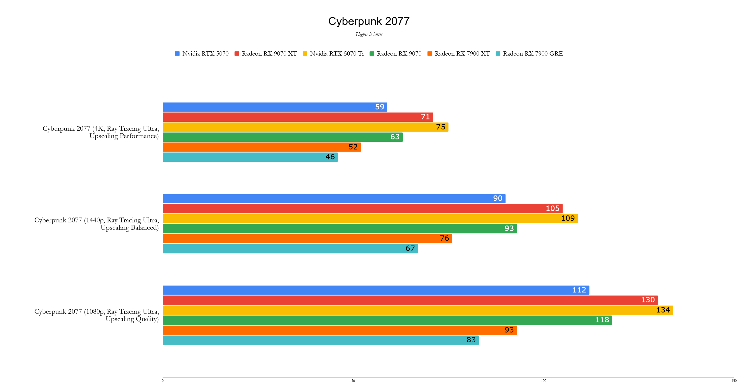 Os testes foram realizados com os drivers mais recentes disponíveis. A NVIDIA Cards usou Driver Ready Game Ready 572.60, exceto o RTX 5070 em drivers de revisão. Os cartões AMD foram testados em adrenalina 24.12.1, com os RX 9070 XT e RX 9070 em drivers de pré-lançamento.
