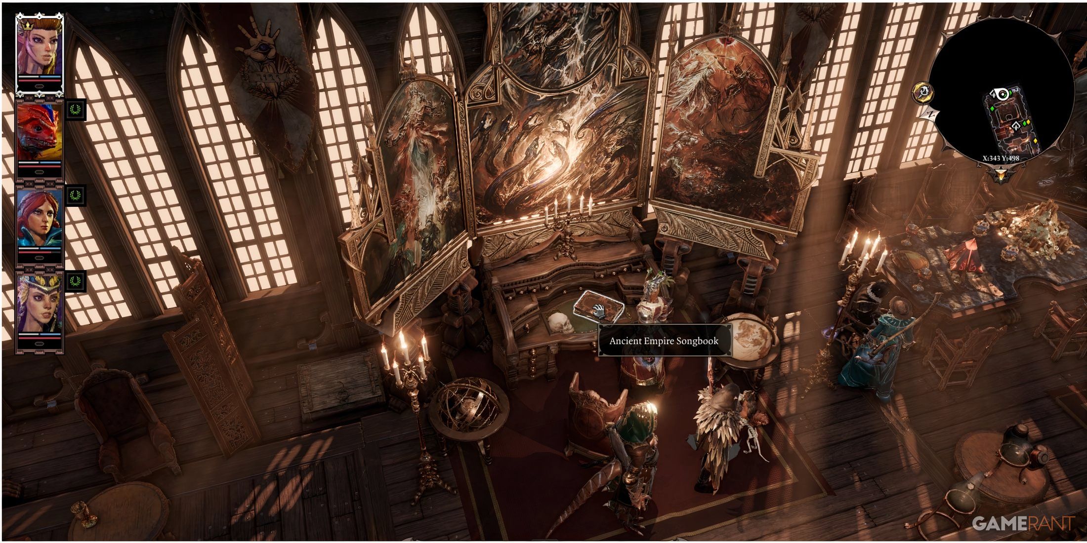 dentro da cabine de Dallis, converse com Tarquin e Dallis extensivamente. Localize o antigo livro de canções do Empire em um pedestal. A leitura revela a música necessária para mover o navio. É aconselhável falar com todos os NPCs antes de iniciar a navegação, pois as interações não estarão disponíveis assim que o navio partir.