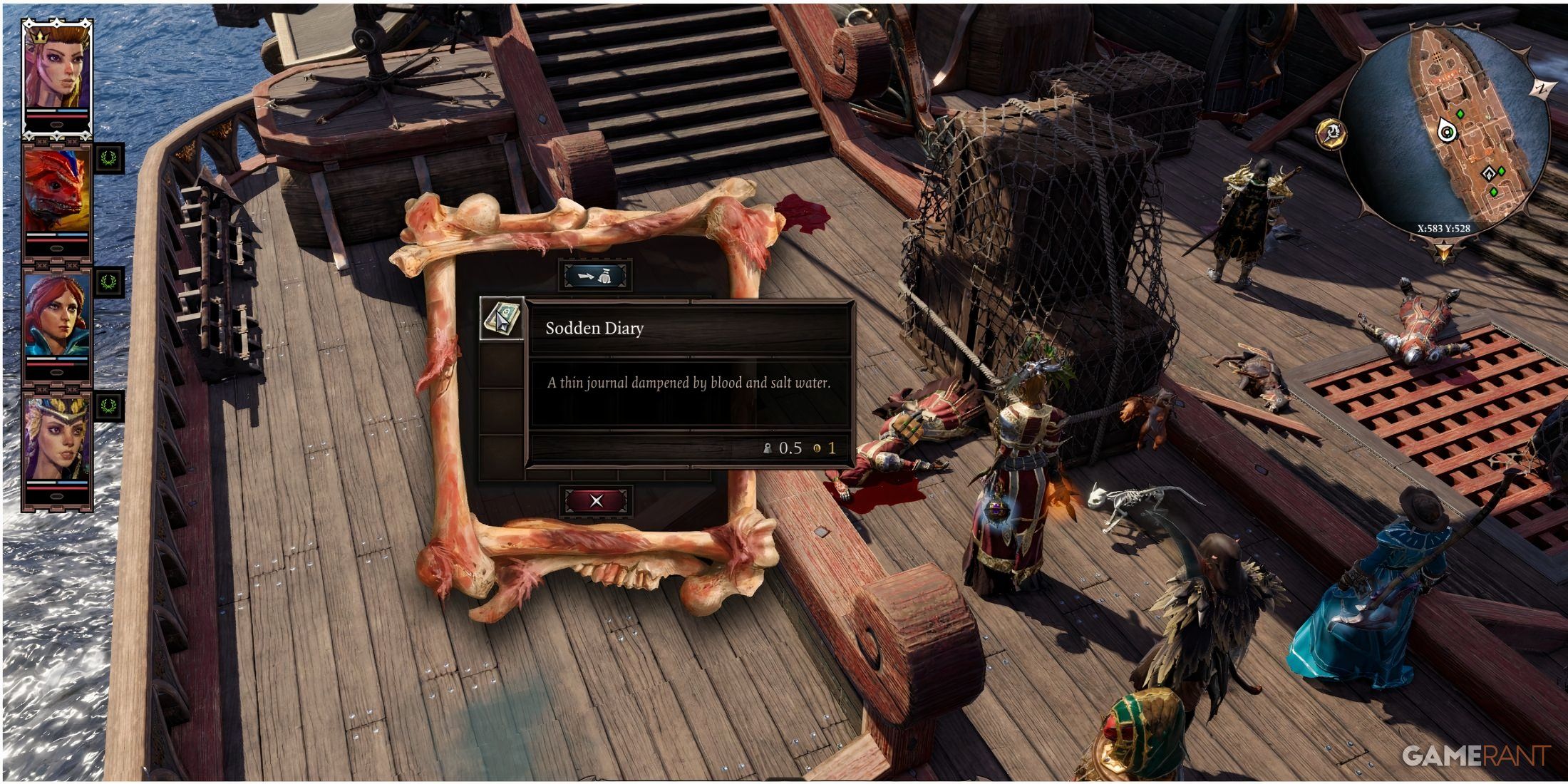 % O IMGP% começa pesquisando os corpos dos magistres e ghouls no convés. Um Magister morto possui um diário encharcado contendo uma senha para uma porta de cabine. Você também pode obter a senha através de uma verificação de habilidade com a porta do cabine do norte. Além disso, você precisará de uma jóia estranha para interagir com a porta da cabine da porta. Um espelho mágico (ao sul das portas da cabine) permite que os caracteres e companheiros de resposta, úteis para verificações de habilidades.