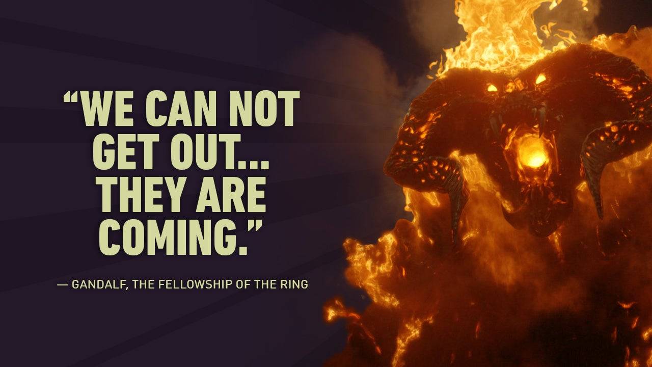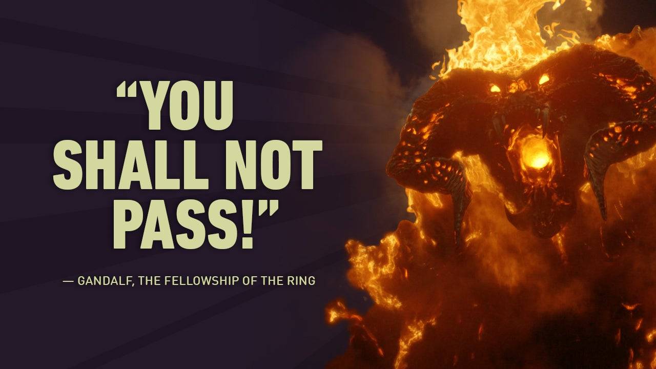 A posição desafiadora de Gandalf contra o Balrog se tornou uma das linhas mais icônicas e citadas na história cinematográfica.