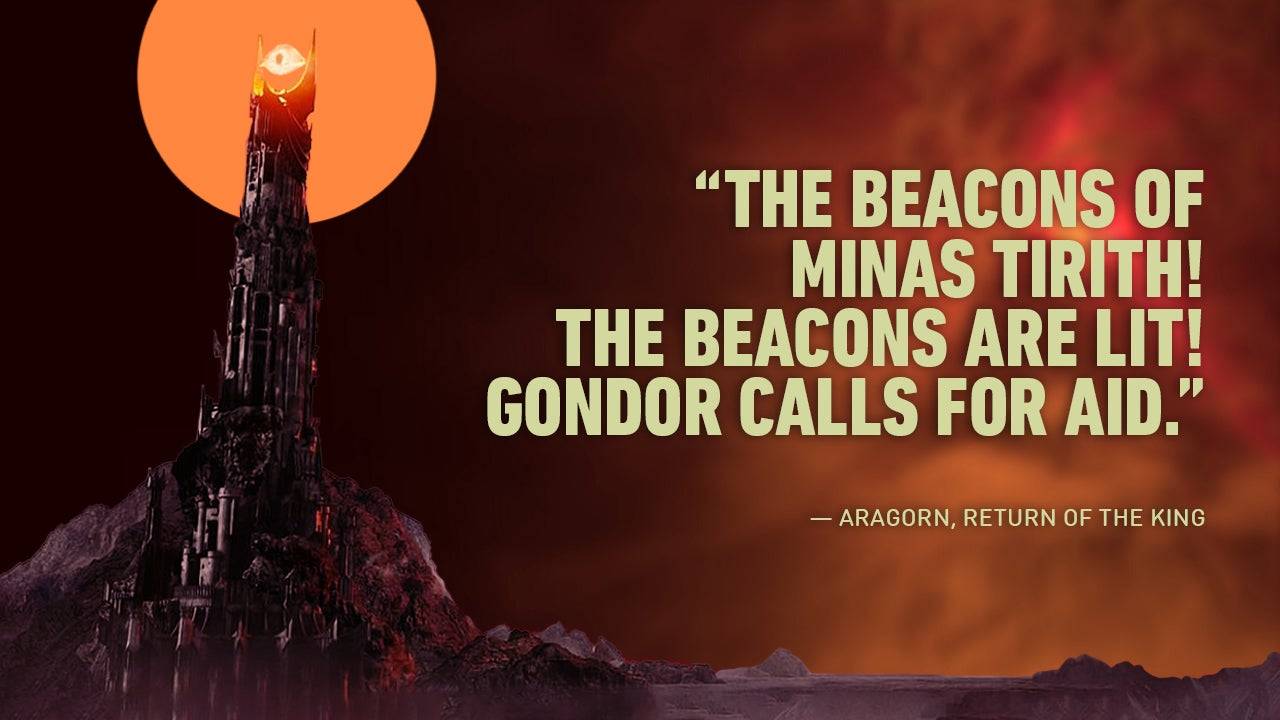 O anúncio de Aragorn da iluminação dos beacons significa o apelo urgente de aliança contra as forças de Mordor.