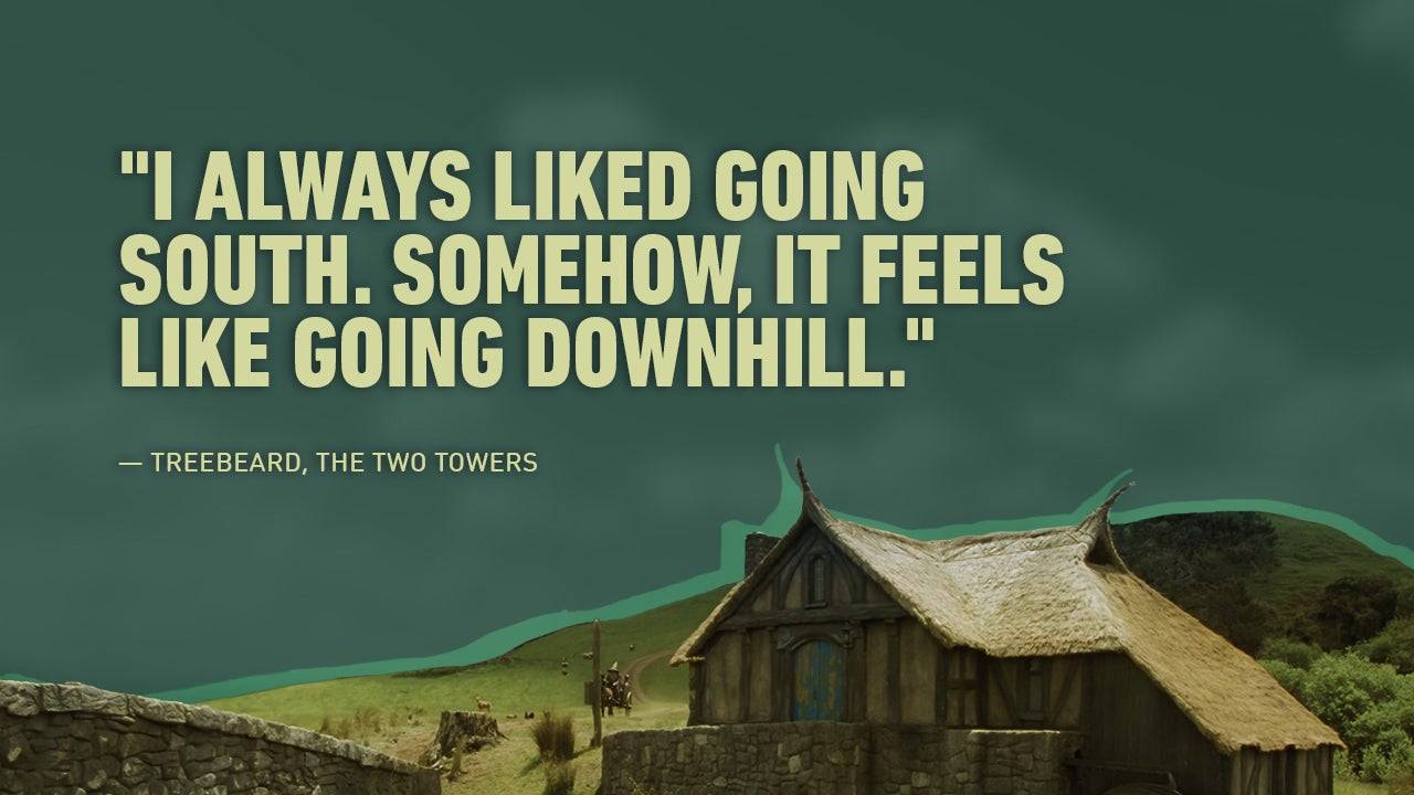 A observação suave do Barba da Árvore sobre a direção da viagem adiciona um toque de humor e uma visão de seu caráter.