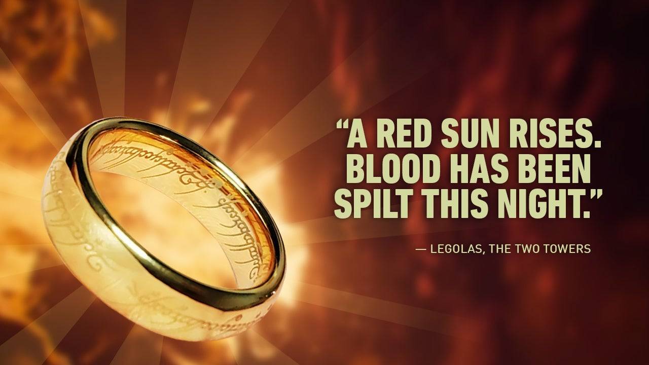 A observação poética de Legolas sobre o nascer do sol sugere a violência que ocorreu durante a noite.