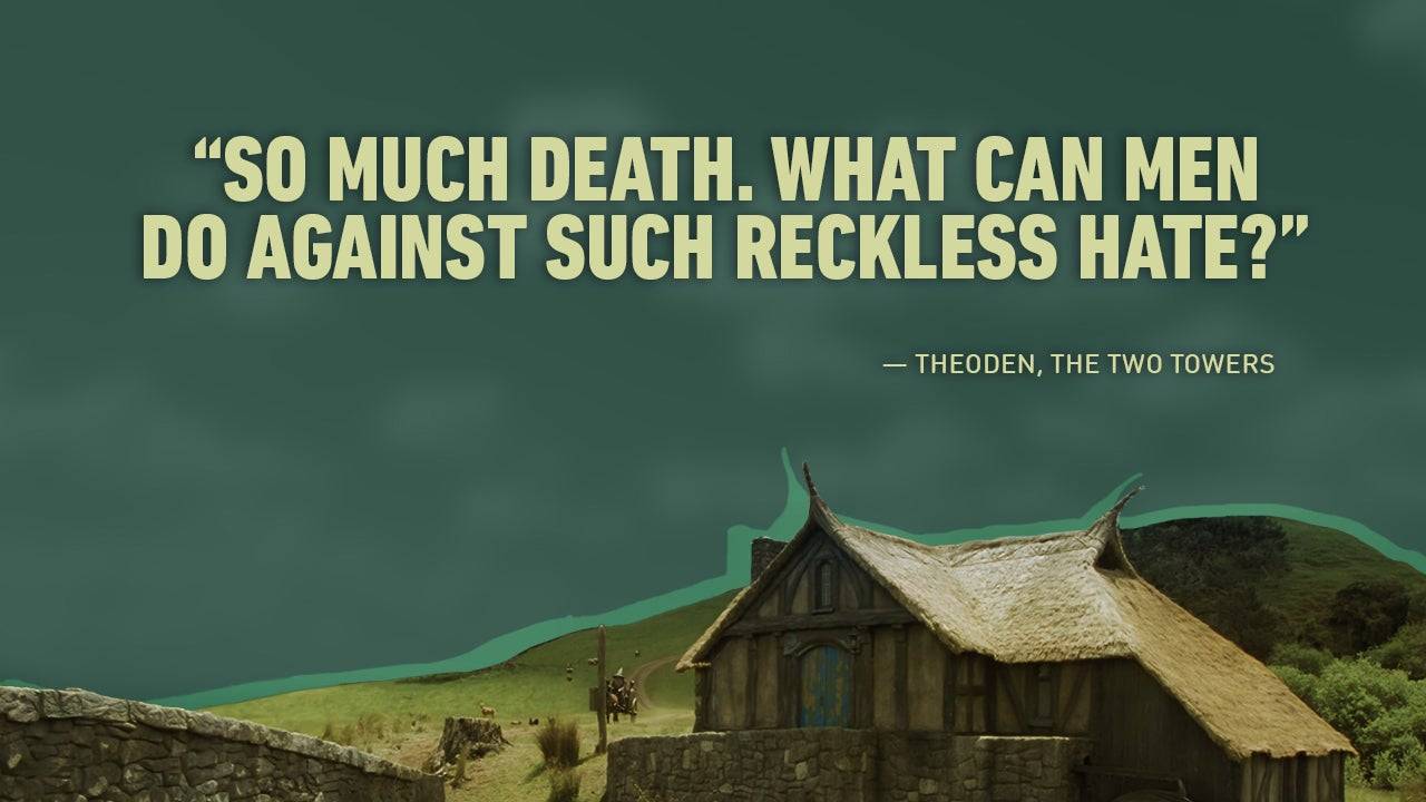 A reflexão sombria de Theoden sobre a futilidade de lutar contra o mal esmagador ressoa profundamente com o pedágio da guerra.