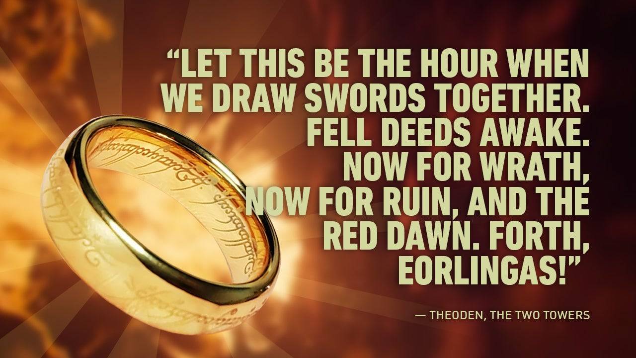O grito de guerra de Theoden, pois eles cobram do Deep de Helm é um testemunho poderoso de sua liderança e coragem.