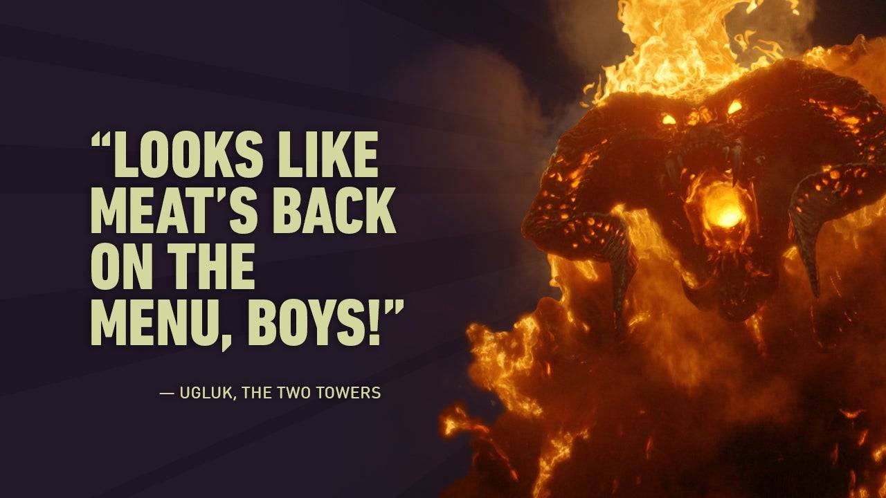 O anúncio sombrio de Uguk acrescenta um elemento arrepiante, mas sombriamente cômico, à natureza brutal de Uruk-Hai.