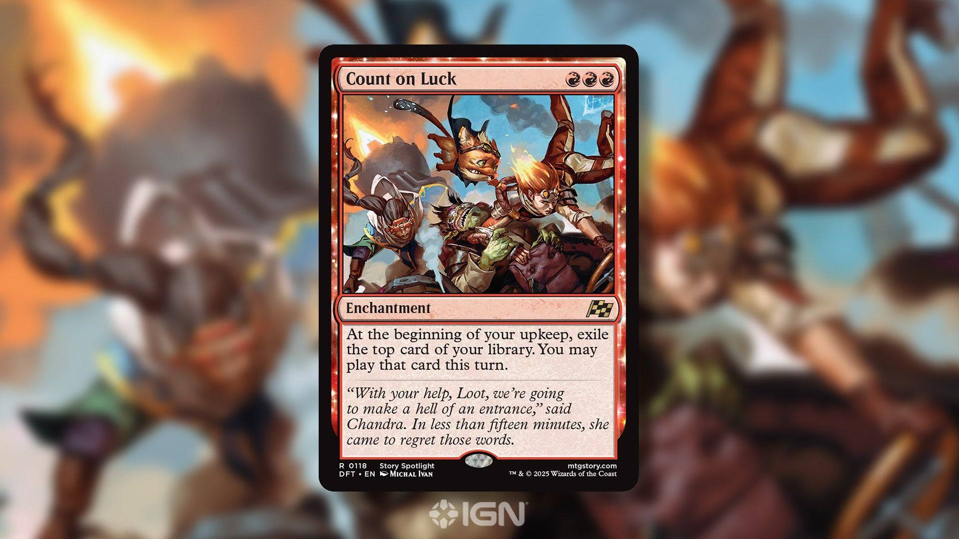 稀有的卡片依靠運氣,是一個3勝的結界,具有直接而有力的效果。在您的每個回合開始時,您會流放圖書館的頂部卡,並可以立即播放。這種“衝動抽籤”的機械師始終為單紅色甲板提供額外的卡片,提供了高風險,高回報的策略。